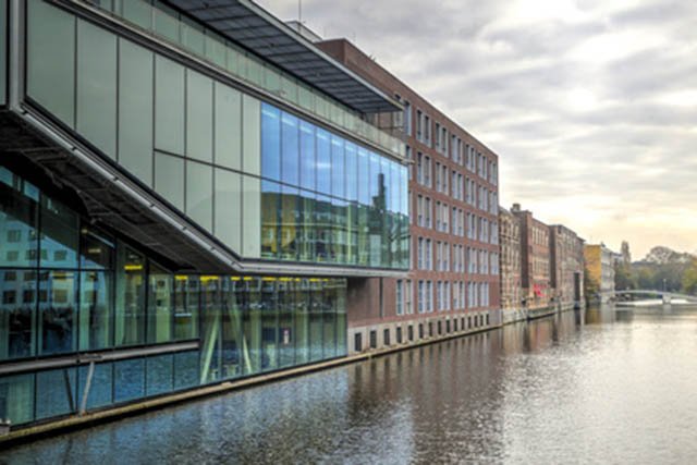 Voor de renovatie en uitbreiding van de Amsterdam Business School, een onderzoeksinstituut dat deel uitmaakt van de Universiteit van Amsterdam, werd een nieuwe centrale hoofdingang gecreëerd. De openbare ruimtes hebben gevels van transparant zonwerend glas, de andere delen van de gevel zijn niet-transparant. Aan de waterzijde steekt een nieuw volume met de foyer van de collegezalen uit de gevel aan de zuidkant van het langgerekte complex. Naast glas bestaat dit volume uit onderhoudsarme materialen zoals beton, aluminium, staal en hout.